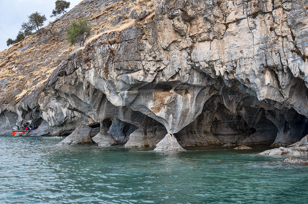 Es werden von den zahlreichen Anbietern unterschiedlich lange Fahrten angeboten – wir haben uns für die Tour "mit Alles" entschieden, weshalb wir u.a. in den Genuß der rostenden Kähne kamen. Wir verlassen die Bucht, fahren um den nächsten Felsvorsprung herum und finden uns unmittelbar vor der ersten Marmorhöhle wieder. Schon diese Auswaschung läßt alle Bootsinsassen vor Staunen verstummen und als das Boot dann auch noch vorsichtig zwischen fragilen Marmorstelen in die Höhle einfährt, bleibt kein Fotohandy ungenutzt.