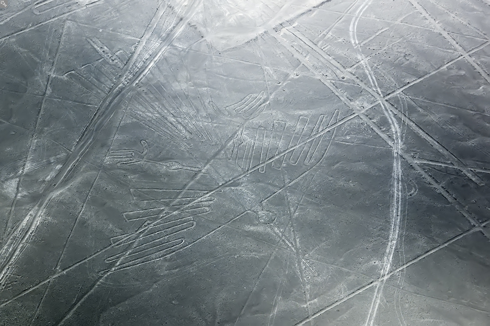 Endlich sind wir in der Luft und verbringen die nächste dreiviertel Stunde in Höhen zwischen 200 und 350 m über einem Teil des 700 km² großen Areals, in dem neben etwa 1000 geometrischen Linien und Formen an die 30 bildnerische Figuren in den Wüstenboden gescharrt worden sind.